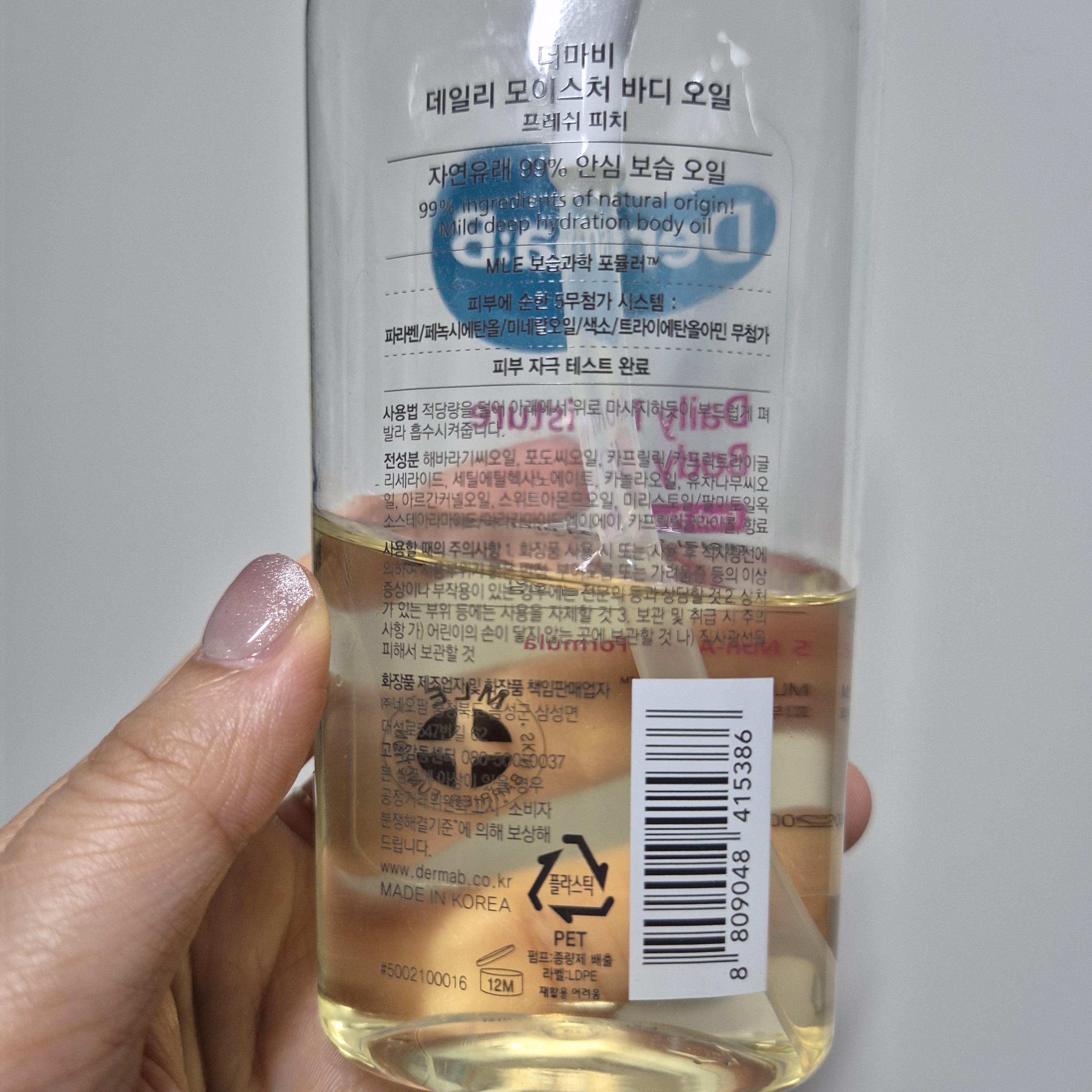 품명 : 더마비 데일리 모이스처 바디오일_프레쉬 피치