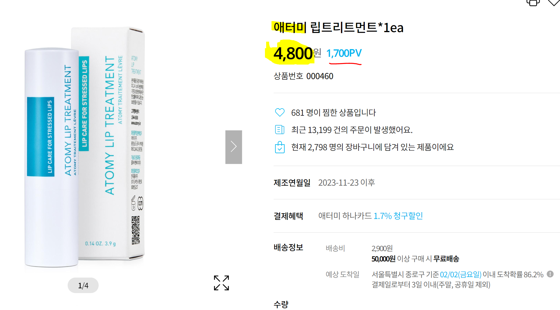 애터미 립밤 : 4800원(정가)