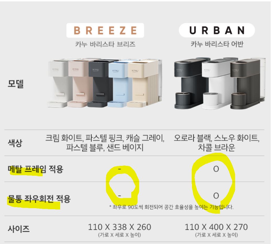 카누 바리스타 브리즈 vs 카누 바리스타 어반 중에 비교하고 고민해봤는데 딱..!! 2가지가 달랐어요.