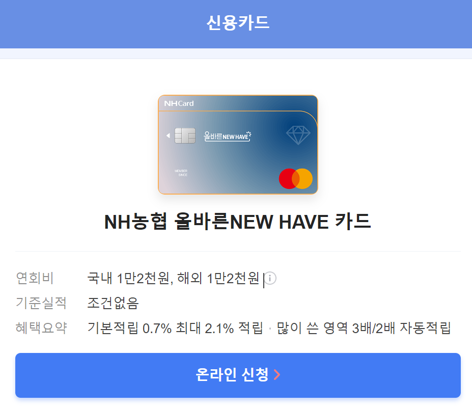 농협 올바른 뉴해브 신용카드.