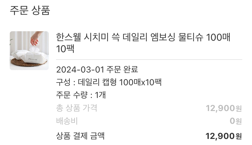올팜에서 게임하다가 시치미 물티슈 100매 10팩이 12,900원에 무료배송하고 있어서 내돈내산했습니다. 100매 10팩에 13000원이면, 100매*10팩=1,000매/13000원 = 1장당 13원
