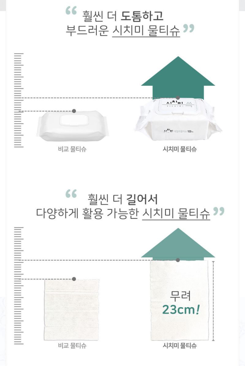 길이도 23cm로 다른 물티슈보다 훨씬 길이가 기네요.