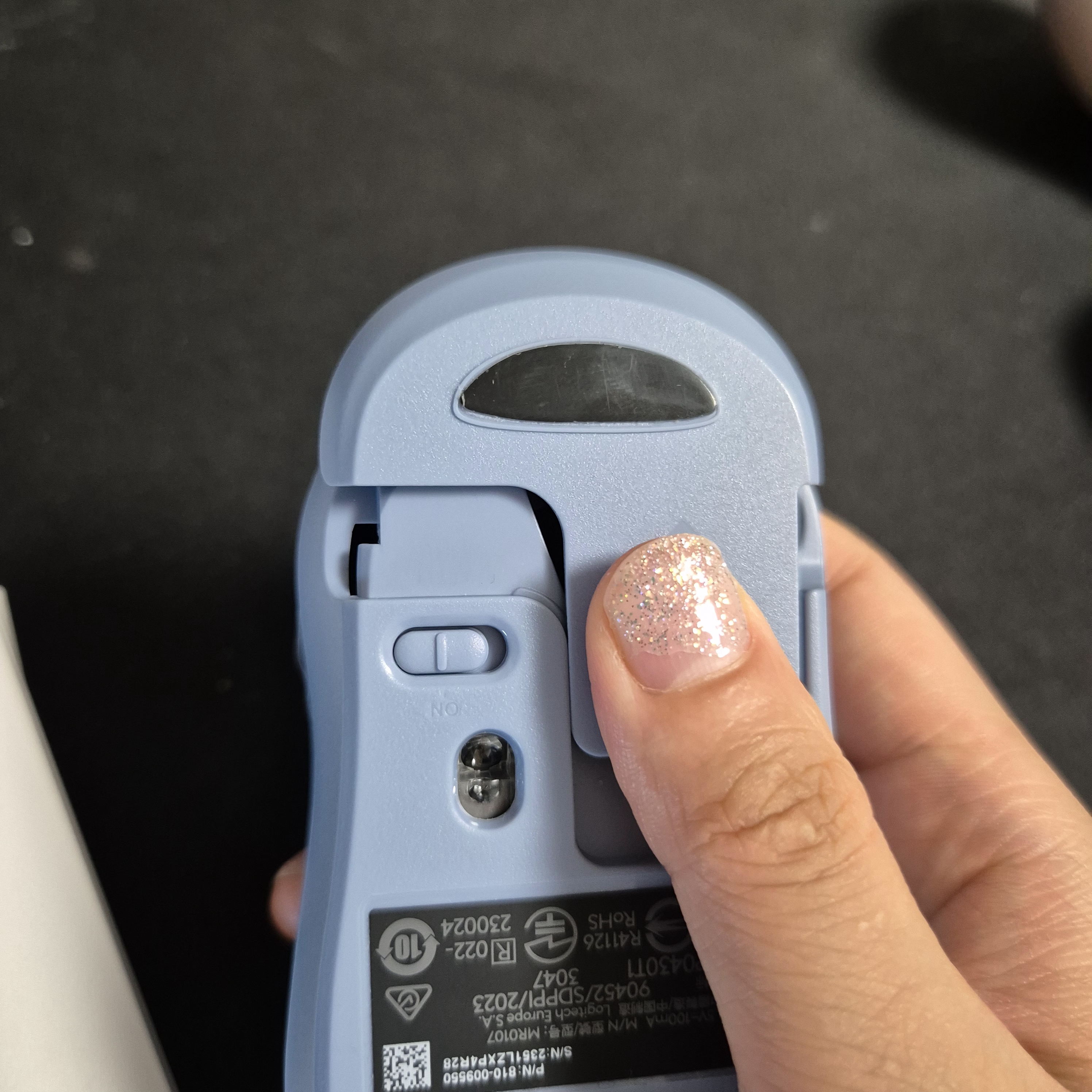5. 마우스 뒷부분을 뒤집어 ON으로 향하도록 만져주면 끝!!