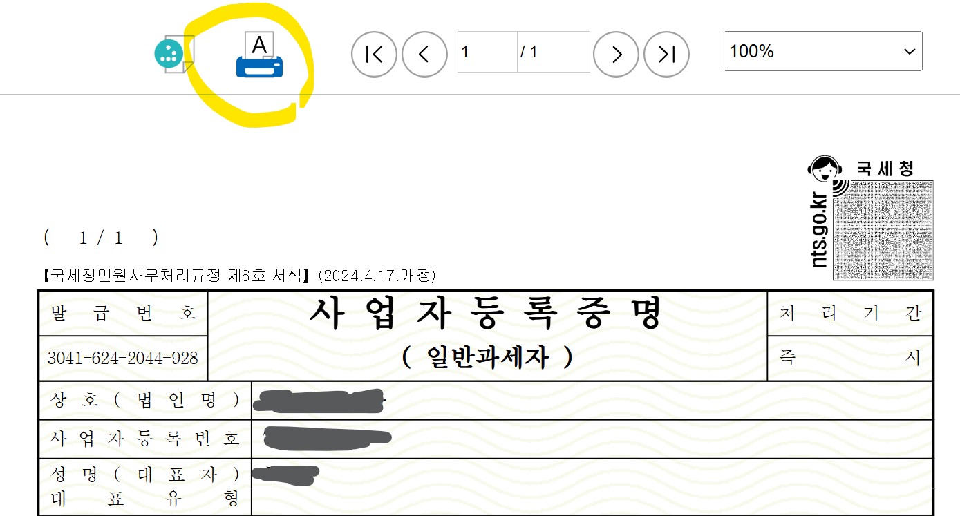 **여기서 사업자등록증명이 사업자등록증명원이다.