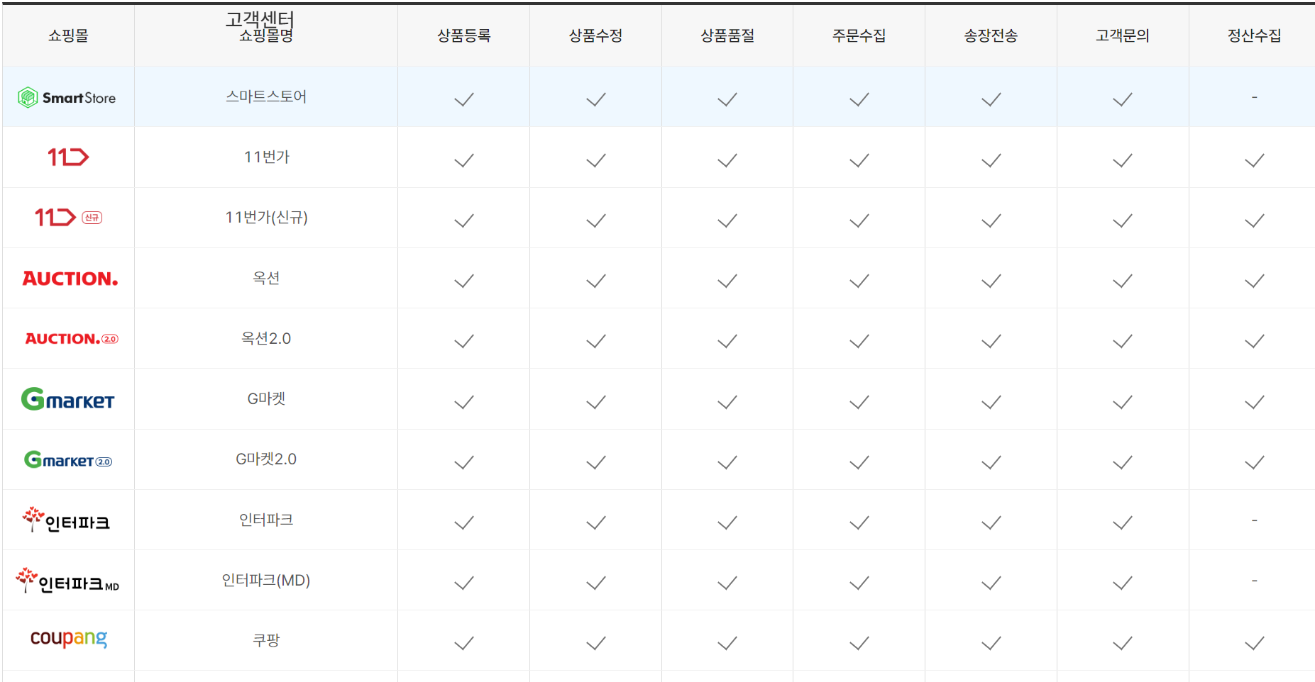 이건 정말 어렵지 않다. 내가 주로 판매하는 사이트(쿠팡 등)의 사이트가 연동되어 있는지만 확인하면 된다. 어떤 곳은 600곳과 연동되어있다고 자랑하는데, 그게 중요한 게 아니라 아무리 많은 사이트와 연결되어 있음 뭐하나. 내가 600개 다 쓸 거 아니지 않나. 내가 쓰는 쇼핑몰과만 연동되어 있음 장땡.