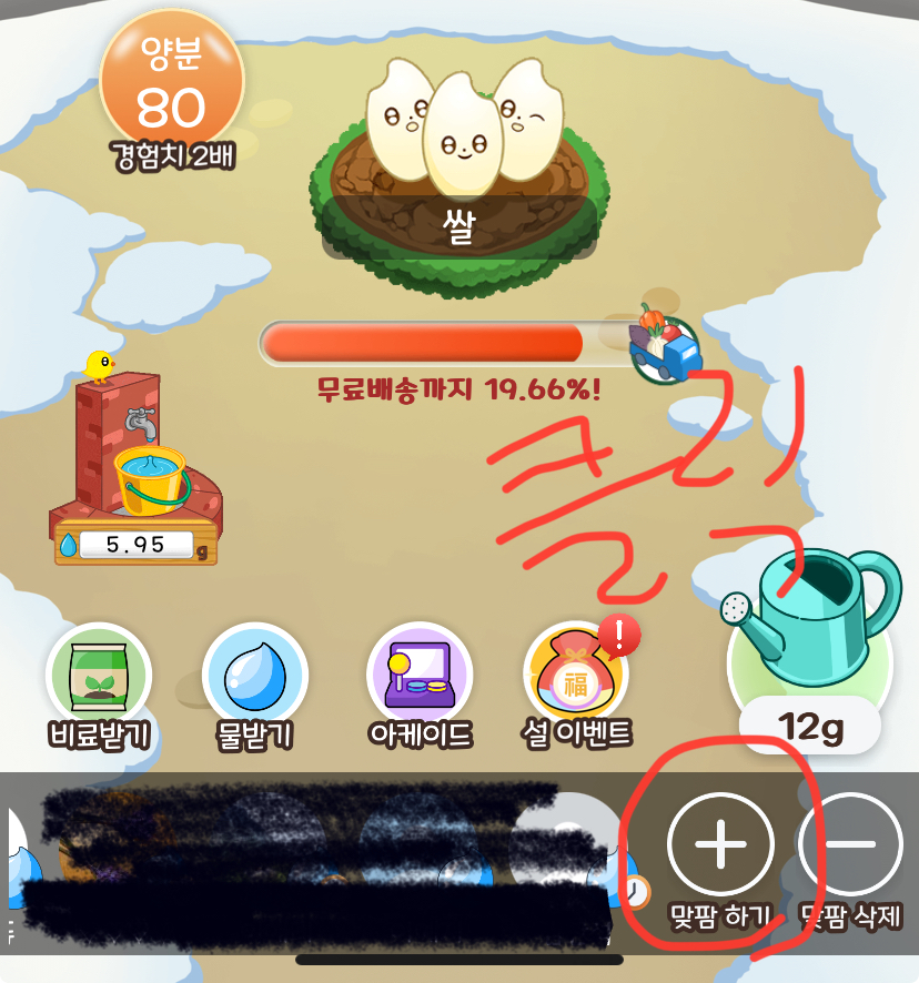 2. 맞팜친구 맺은 후에 열심히 맞팜 어플 속에서 알아서 잘해주시면 됩니다.(맞팜 들어가서 물주기,콕찌르기 등등)