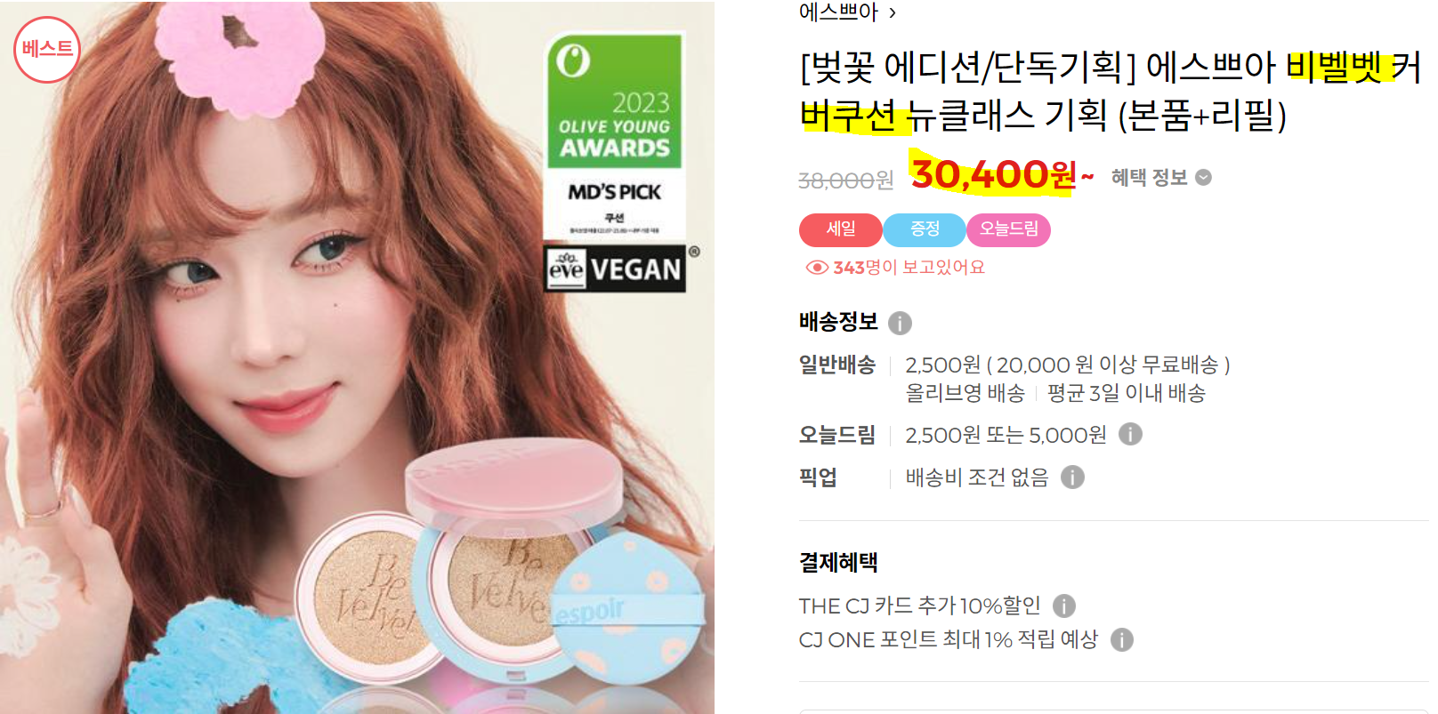 [올리브영: 에스쁘아 비벨벳 쿠션 vs 차앤박 앰플 쿠션]