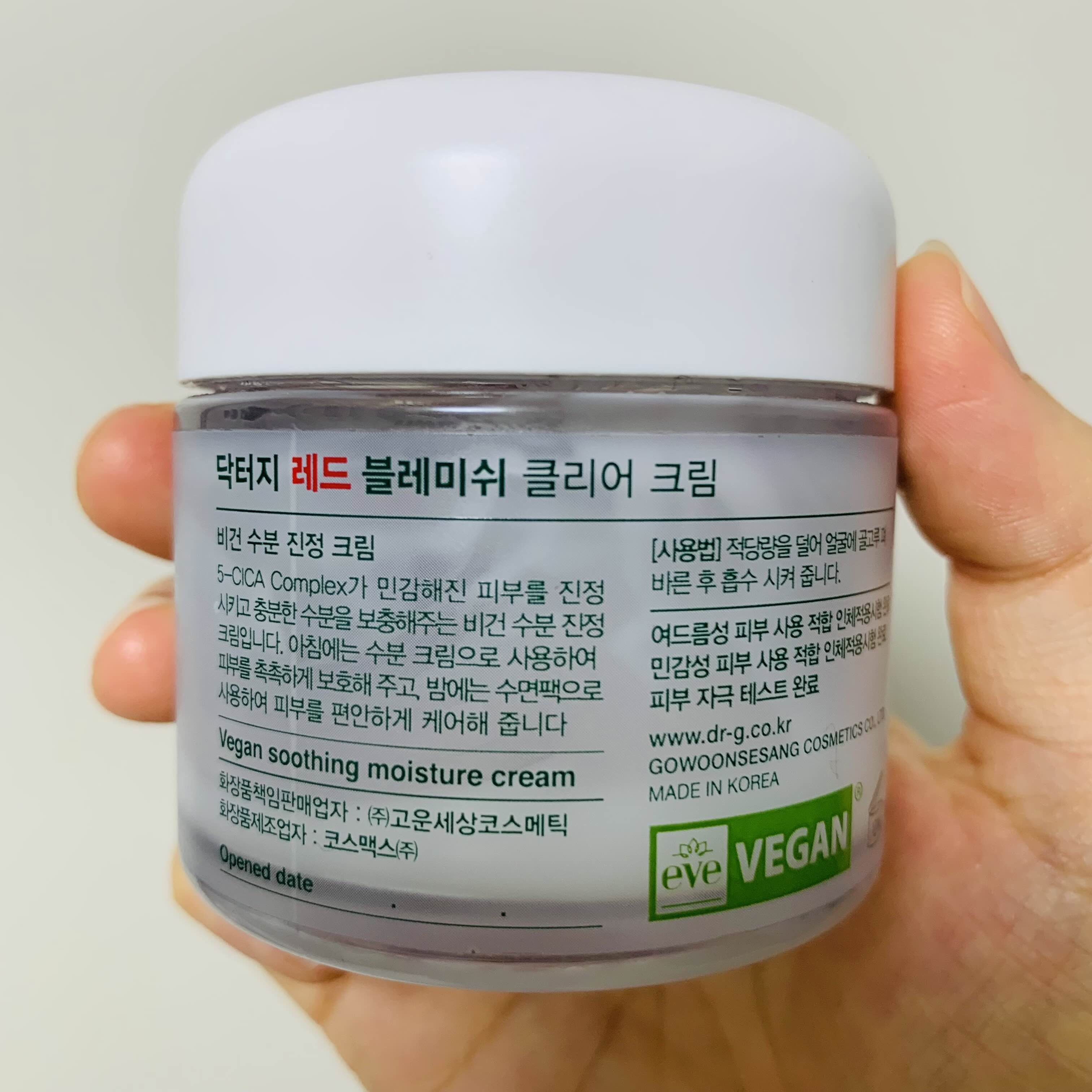 비건 인증 받은 수분진정크림. 아침에는 수분크림으로 사용, 밤에는 수면팩으로 사용하라고 한다. 어머? 여드름성 피부사용, 민감성 피부사용 적합 인증을 받은 제품이였네??? 그래서 성인 여드름이 점차 사라진거였구만.....!! 피부가 민감한데도 불구하고 따갑거나 뭐가 올라오지도 않았다.