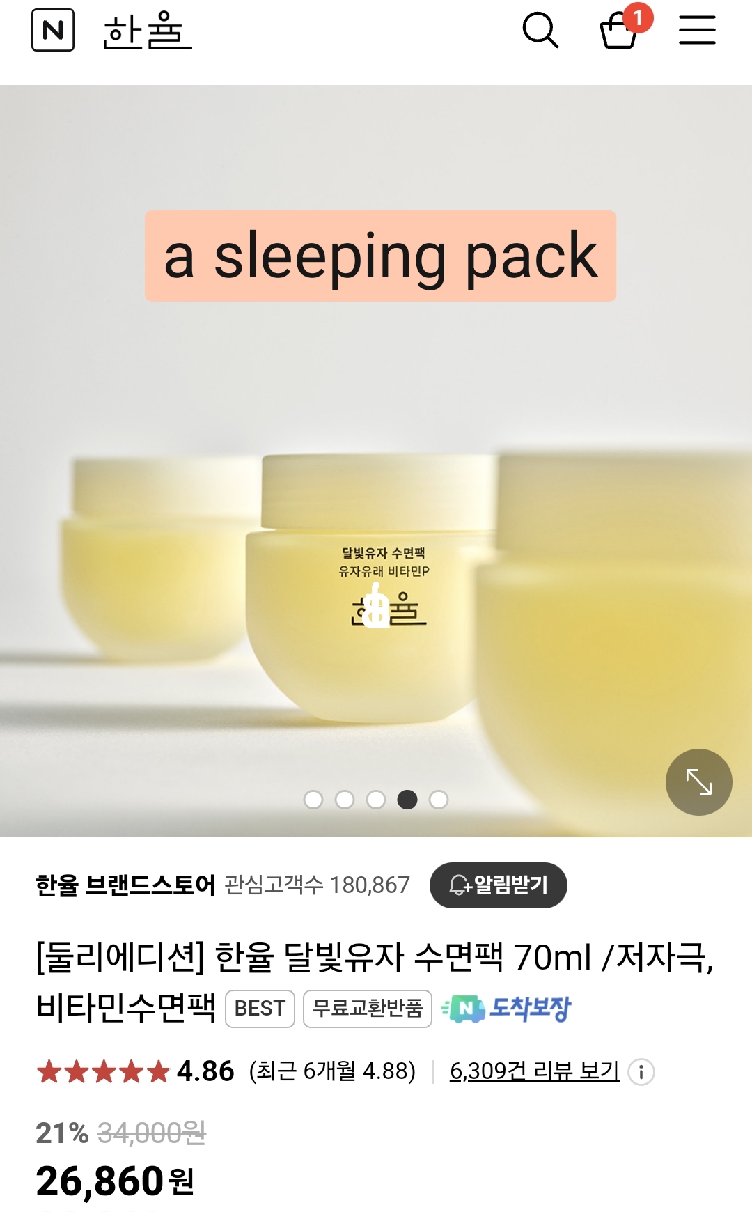 1. Hanyul Yuza Sleeping pack